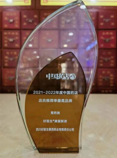 好醫生®康復新液榮獲“中國藥店店員推薦率最高品牌(胃藥類)”